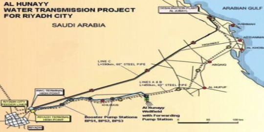 Involves Design of Water Transmission System  to transfer  of Treated Water from Al Hunayy wells to Riyadh City.