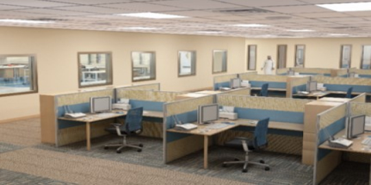 The safety factors has been taken into consideration in selecting the interior finishing materials without neglecting the aesthetical aspects through choices of colors and furniture pieces to provide a perfect working environment