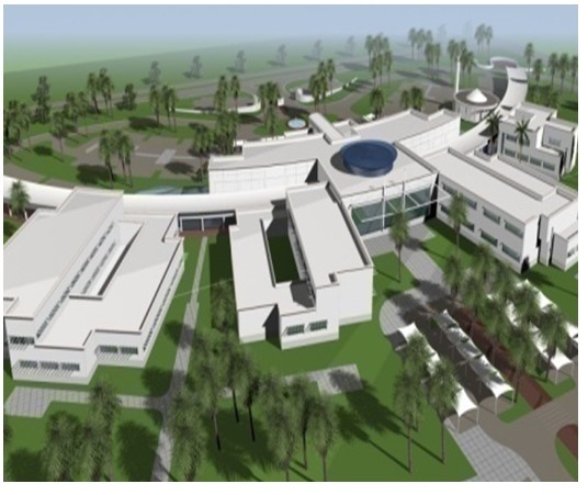 The mosque is located on the main axis, in the middle of the Academic Area, on a piece of land corresponding to something around 10,000 m², Mosque area 1,200 m²